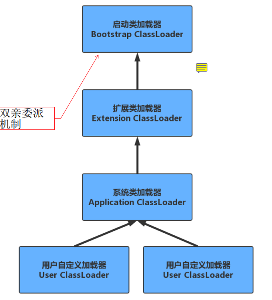 当一个类收到了类加载请求时,不会自己先去加载这个类,而是将其委派给父类,由父类去加载,如果此时父类不能加载.反馈给子类,由子类去完成类的加载。自底向上的检查,自顶向下的加载注意双亲委派模式的问题:无法识别应用程序类加载器中的类。