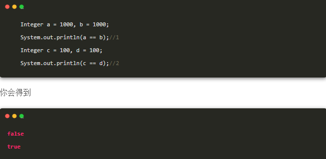 基本知识:我们知道,如果两个引用指向同一个对象,用==表示它们是相等的。如果两个引用指向不同的对象,用==表示它们是不相等的,即使它们的内容相同。因此,后面一条语句也应该是false 。